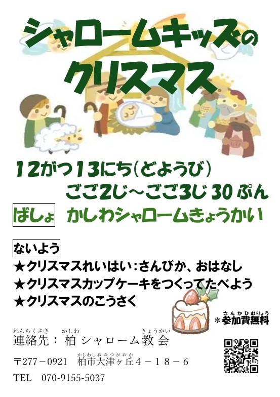 12月13日(土) 14:00~15:30 於:柏シャローム教会 |